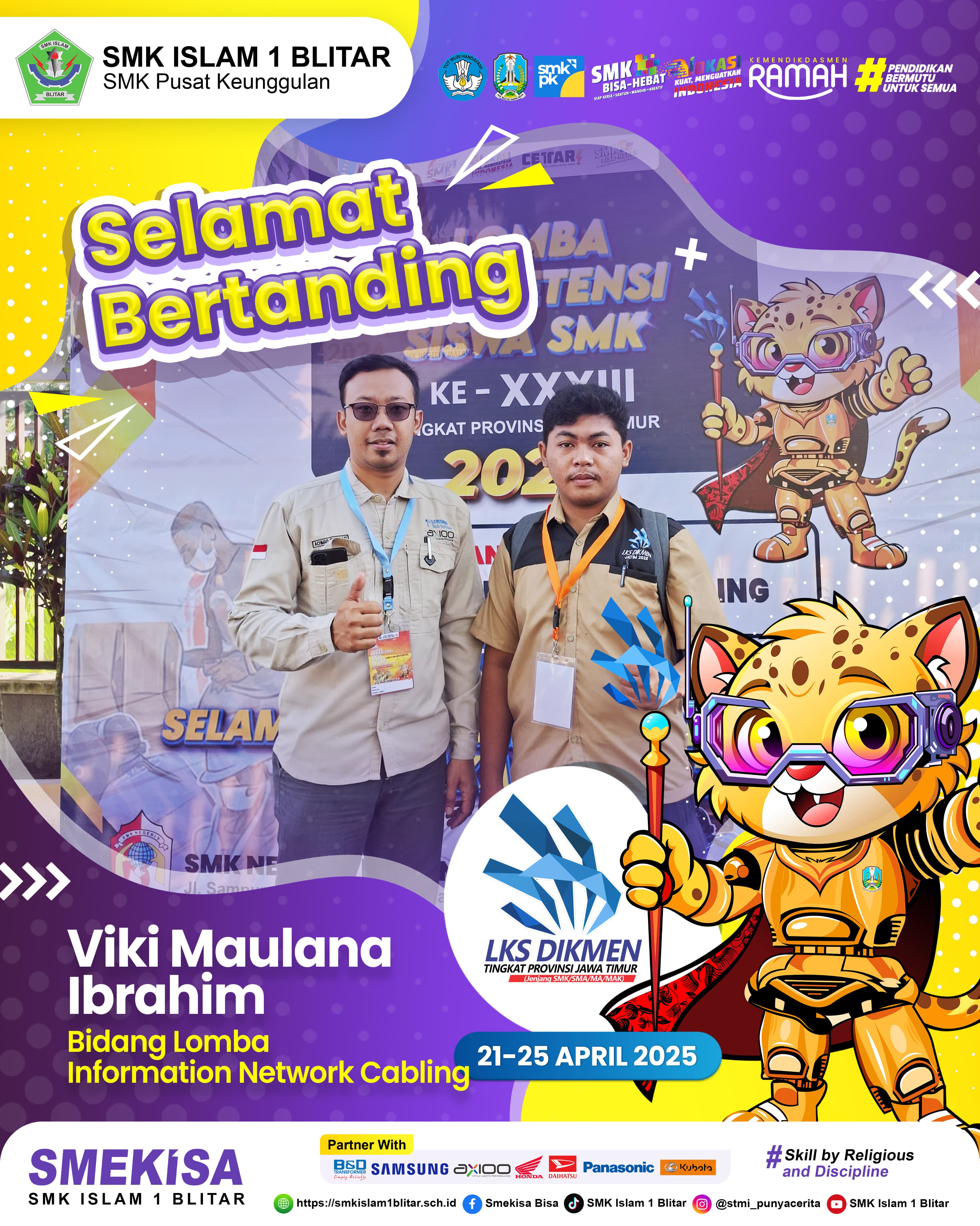 Salah satu peserta yang turut bersaing dalam ajang ini adalah M. Ainul Yaqin, siswa SMK Islam 1 Blitar. Ia tampil percaya diri dan siap menghadapi tantangan di setiap tahapan lomba, mulai dari persiapan awal hingga technical meeting. Ainul didampingi oleh Abdullah Umar, guru pembimbing dari sekolahnya yang turut memberikan arahan dan dukungan teknis selama proses kompetisi berlangsung.